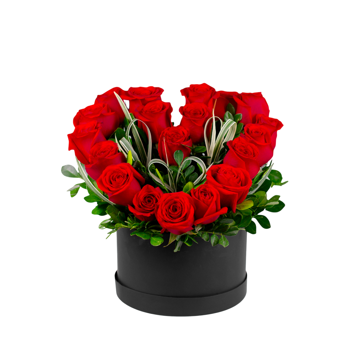 Box Incluye 17 a 18 rosas y follaje + dedicatoria+ topper