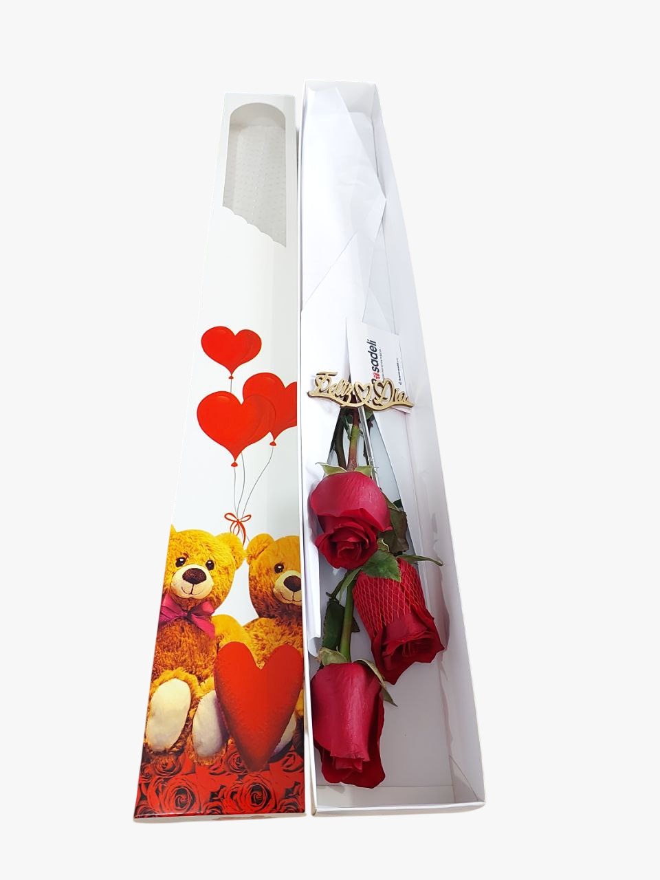 INCLUYE 3 ROSAS + DEDICATORIA y topper