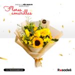 Ramo de 3 girasoles + 3 rosas amarillas + mix de flores amarillas y follaje.